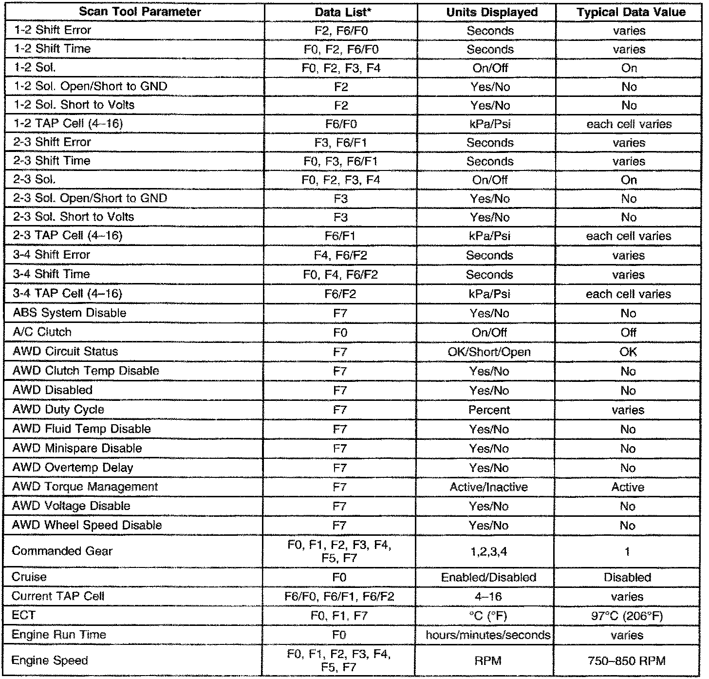 Only the parameters listed below are used for diagnosing. If a scan tool displays other parameters, the values are not recommended by General Motors for use in diagnosis.