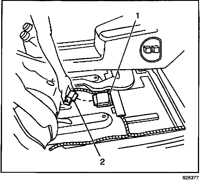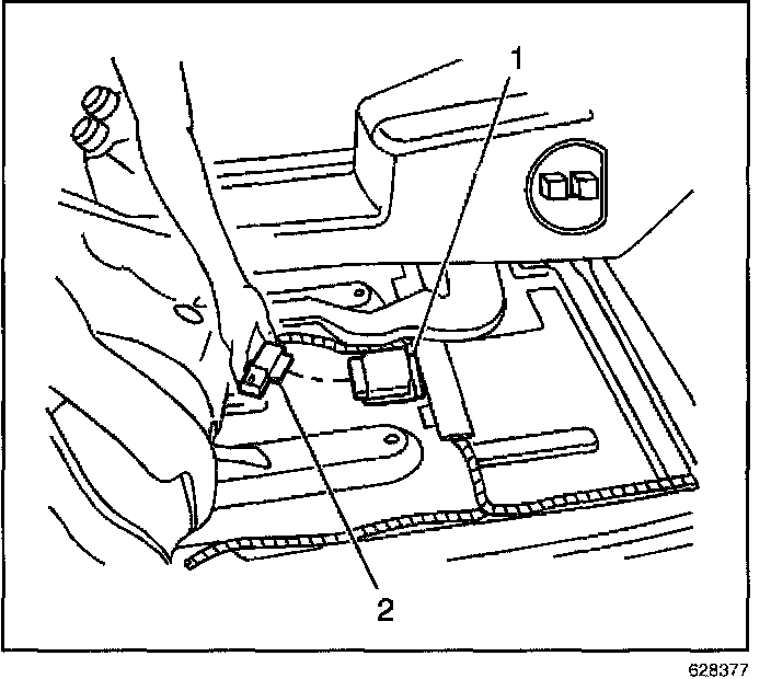 3. Install the SDM wiring harness connector (2) to the SDM (1).