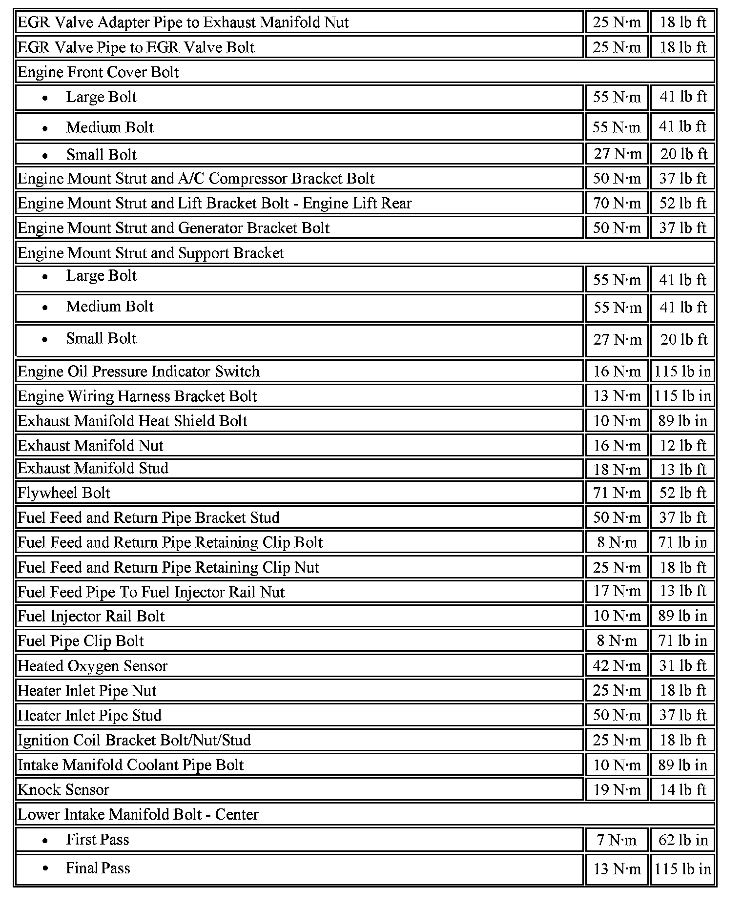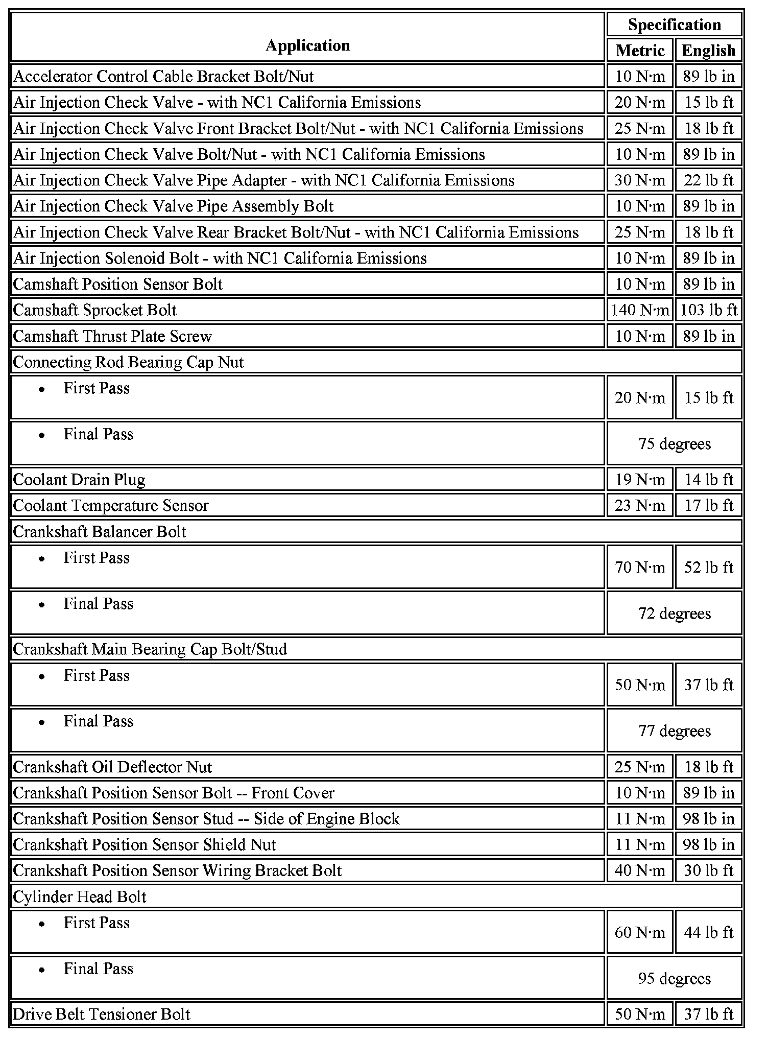Fastener Tightening Specifications
