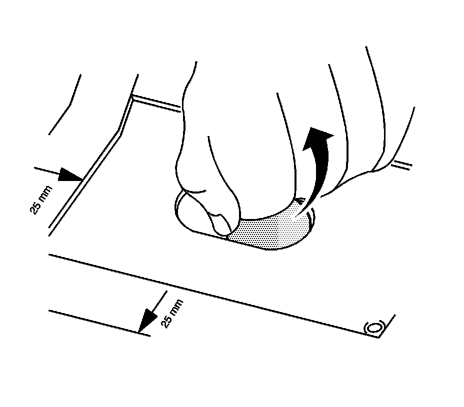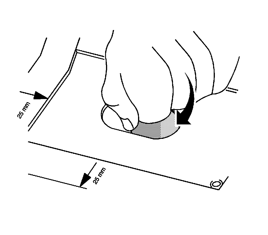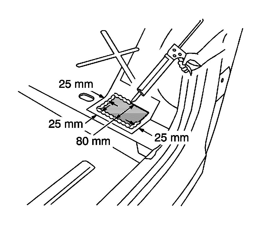 7. Apply a 3-6 mm (1/8-1/4 in) bead of metal panel bonding adhesive GM P/N 12378566/7 (Canadian P/N 88901674/5) or equivalent to both of the mating surfaces.
