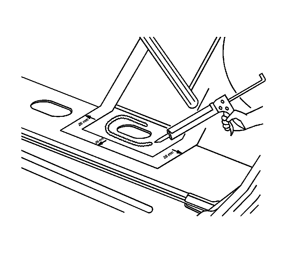 5. Perform the necessary procedures to gain access to repair. Refer to Carpet Replacement (Removal and Replacement) in Interior Trim.