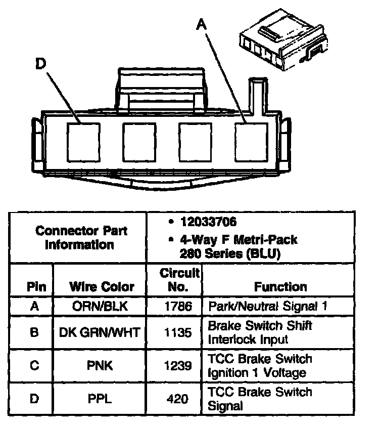 Transmission Shift Interlock/TCC Brake Switch Connector, Wiring Harness Side:
