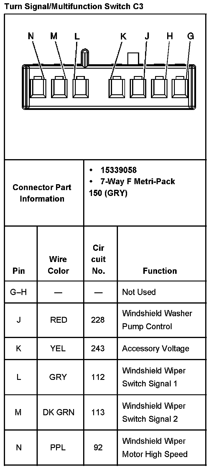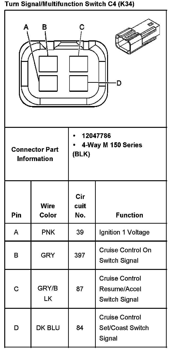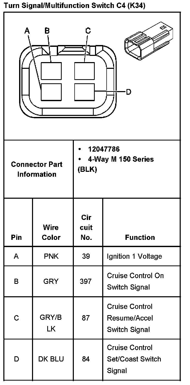 Turn Signal/Multifunction Switch C4 (With RPO Code K34):