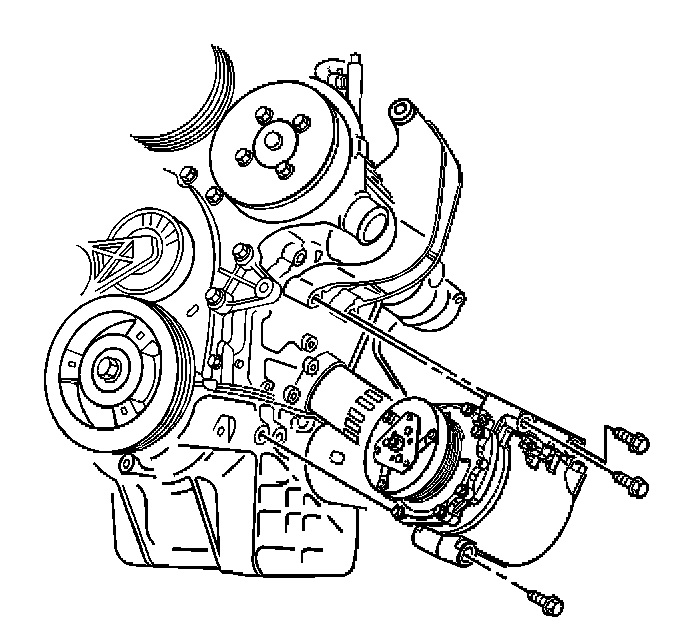 16. Remove compressor mounting bolts.