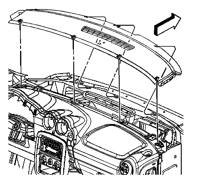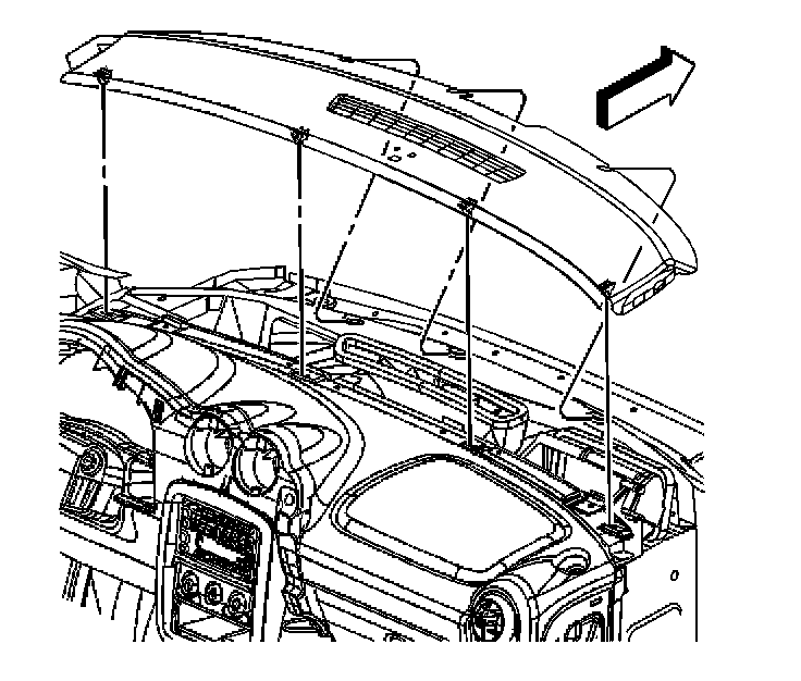 IMPORTANT: Remove the I/P upper trim panel slowly, the retainer clips could possibly fall into the I/P.