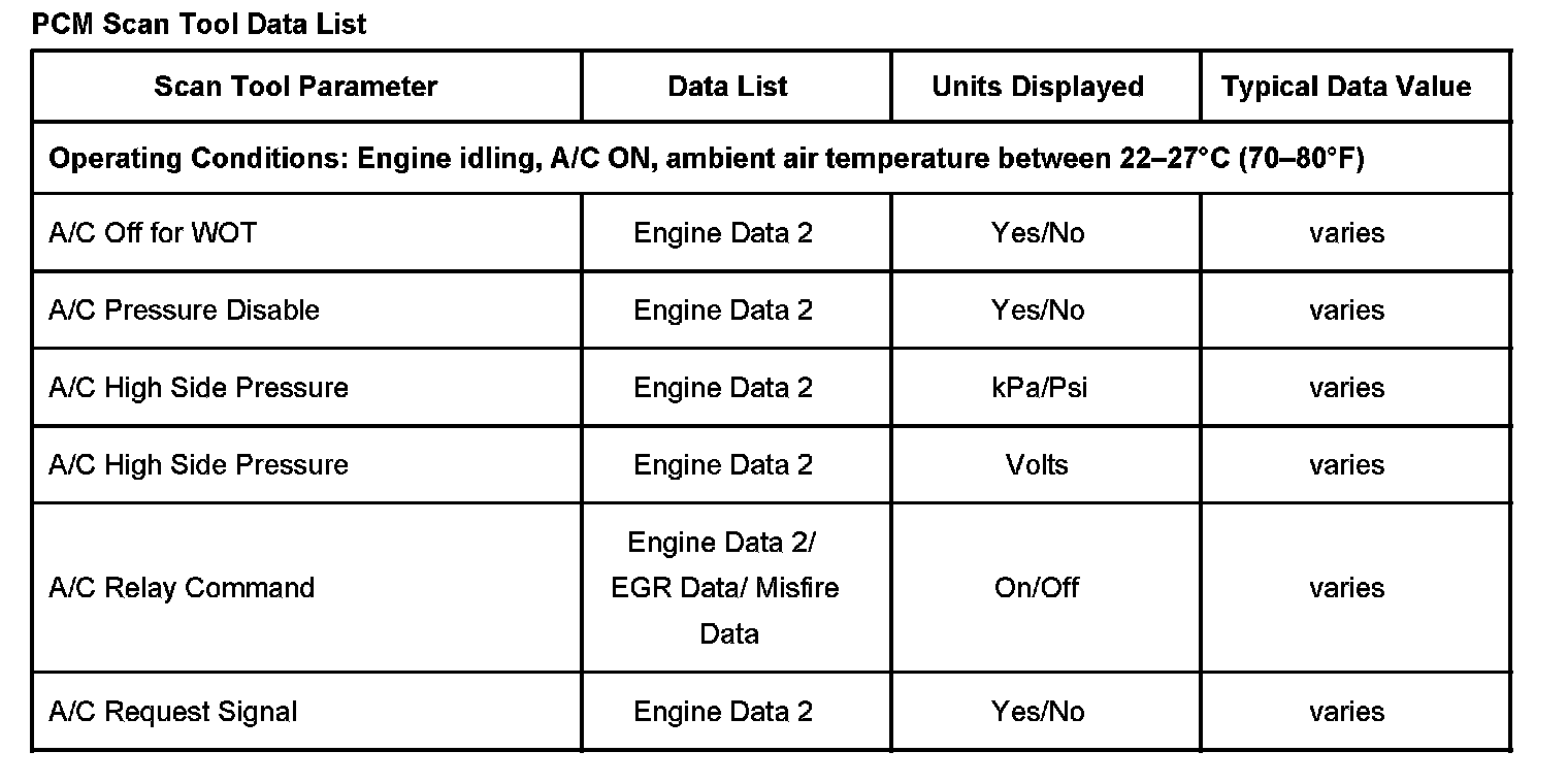 Scan Tool Data List - Powertrain Control Module (PCM)
