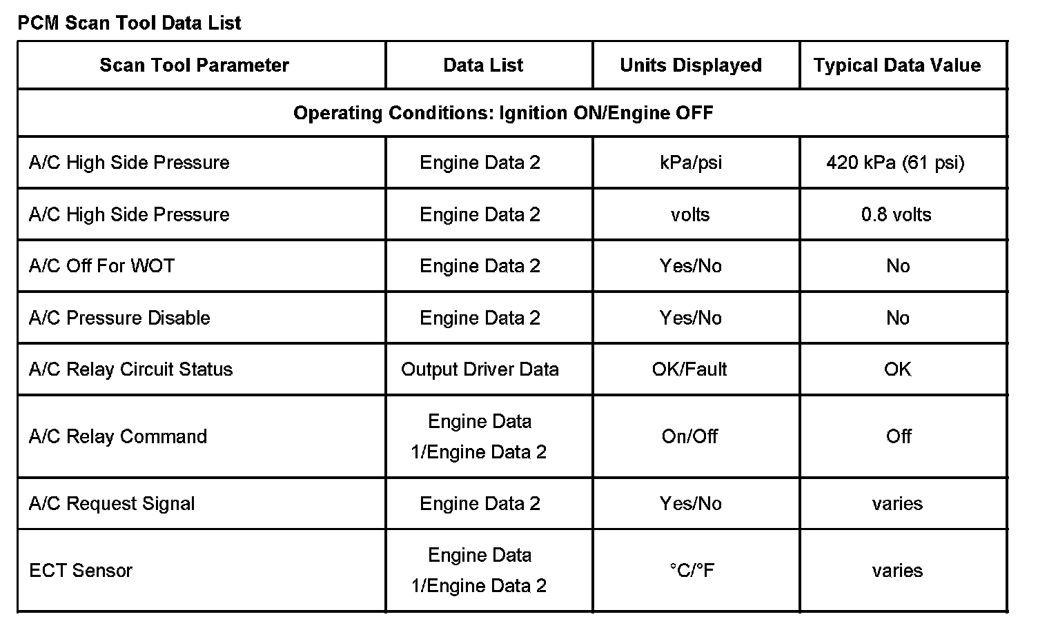Scan Tool Data List - Powertrain Control Module (PCM)