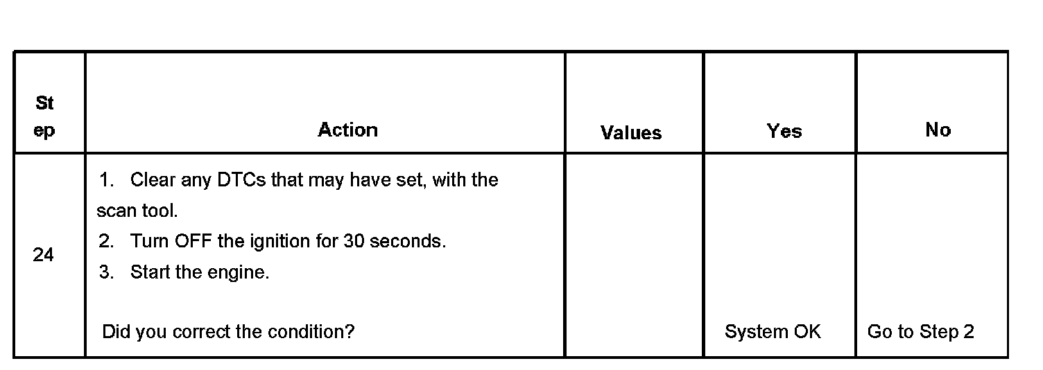 The number below refers to the step number on the diagnostic table.