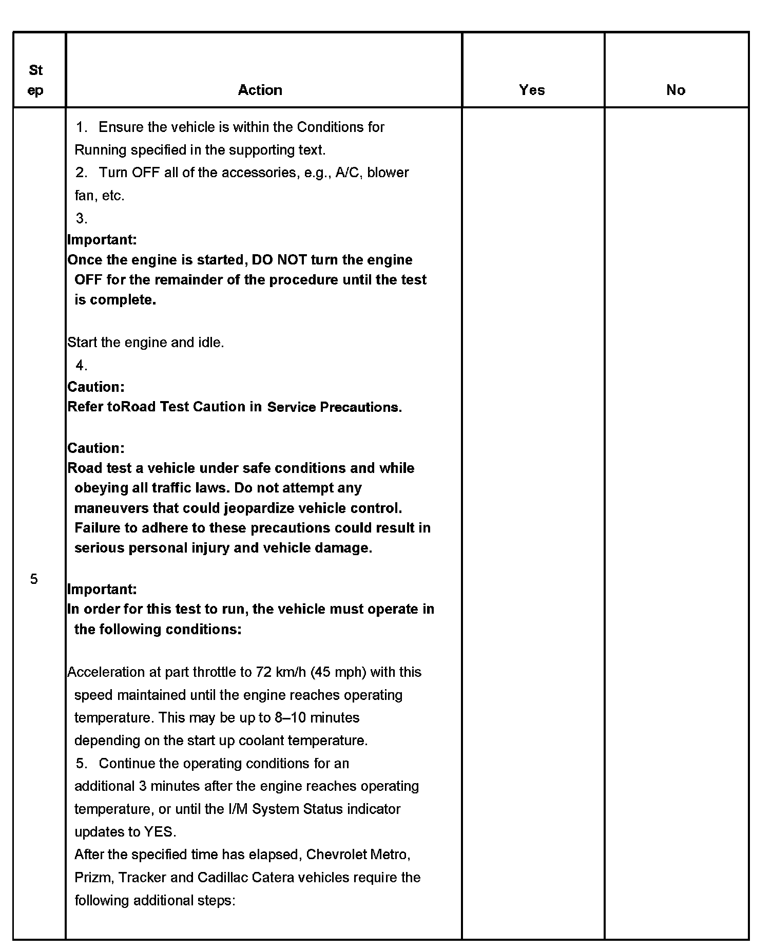 1. Make sure you perform the I/M System Check before performing this test. Failure to do so may result in difficulty updating the status to YES. Inspection/Maintenance (I/M) System Check