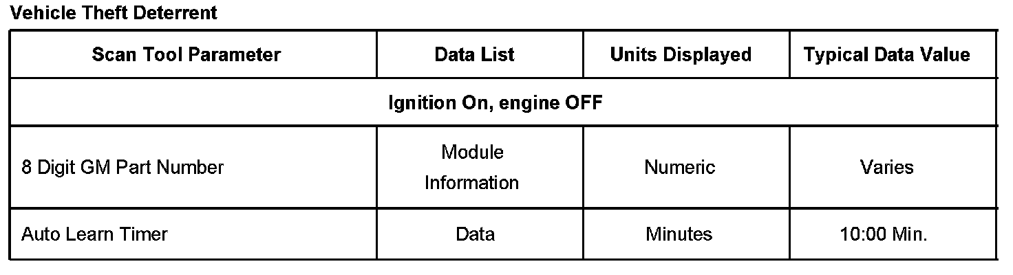 Vehicle Theft Deterrent Scan Tool Data List Part 1: