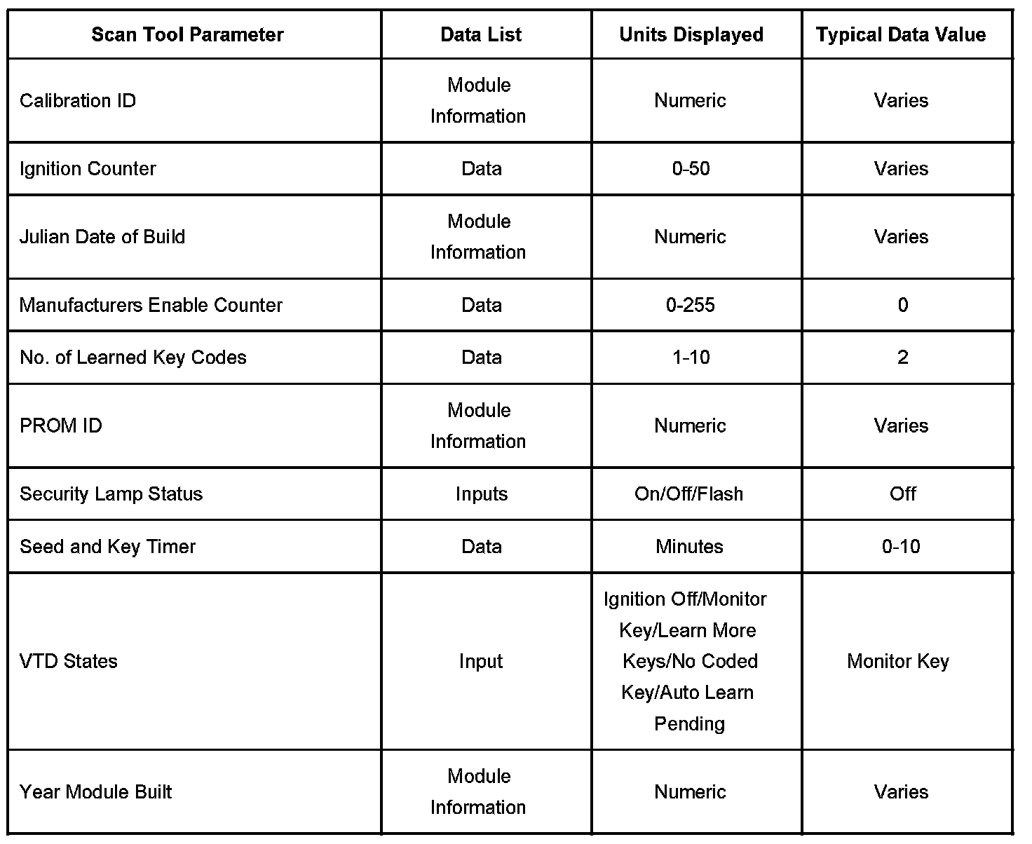 Scan Tool Data List - Antitheft System