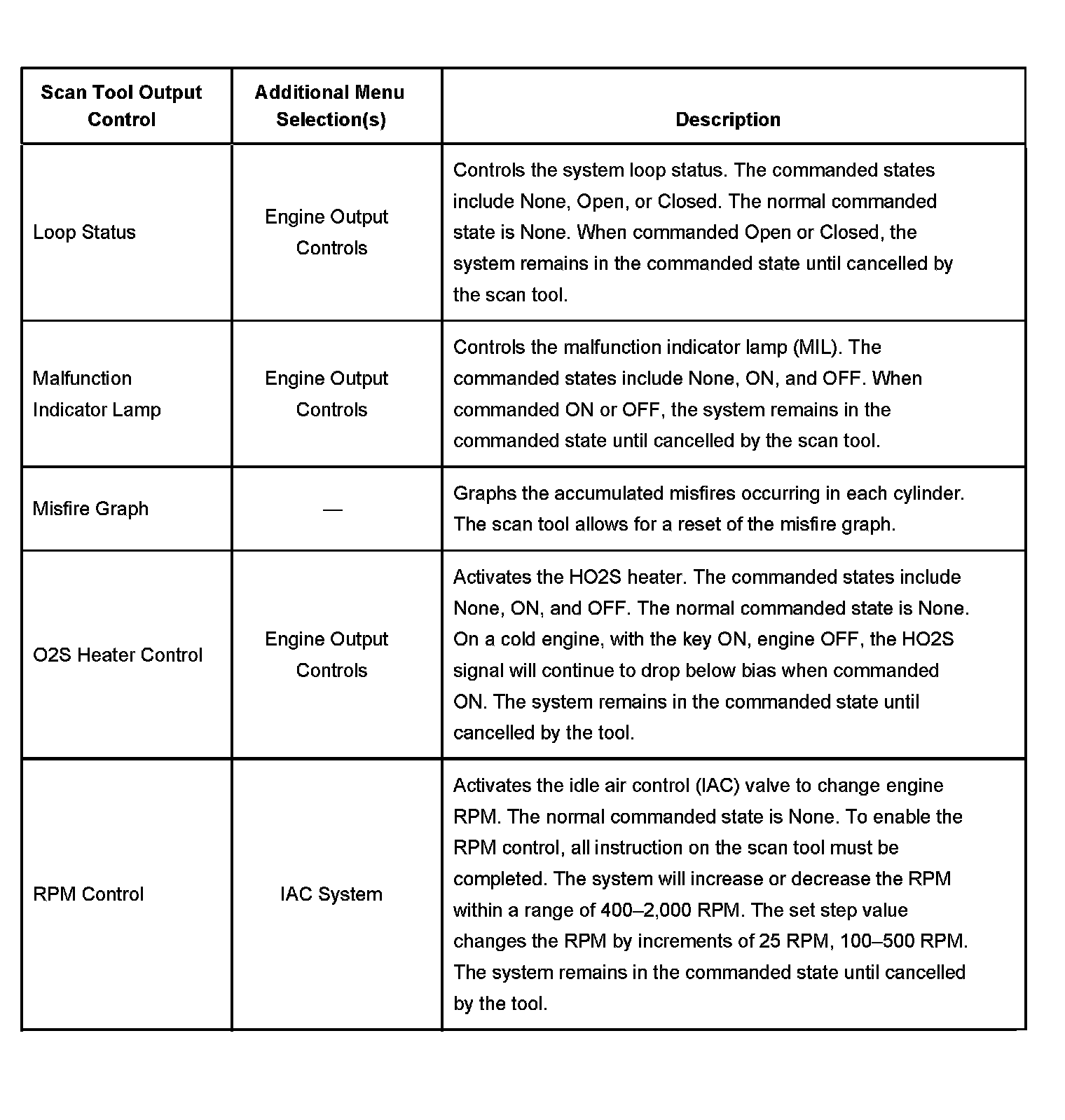 Scan Tool Output Controls