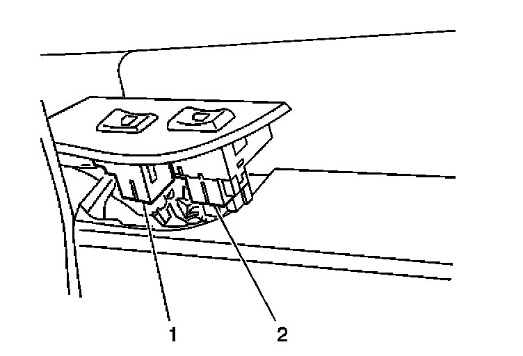 4. Remove the front door window control switch (1) from the front door window switch plate using a small flat-bladed tool.