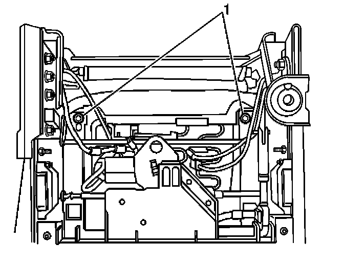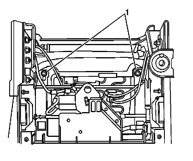 2. Adjust the front seat assembly up and forward in order to access the fasteners (1) at the rear of the front seat cushion assembly.