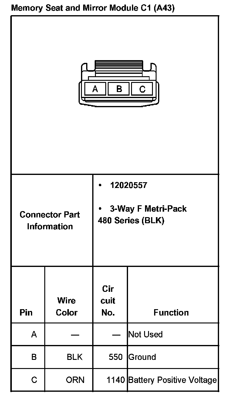 Memory Seat And Mirror Module C1 (With RPO Code A43):