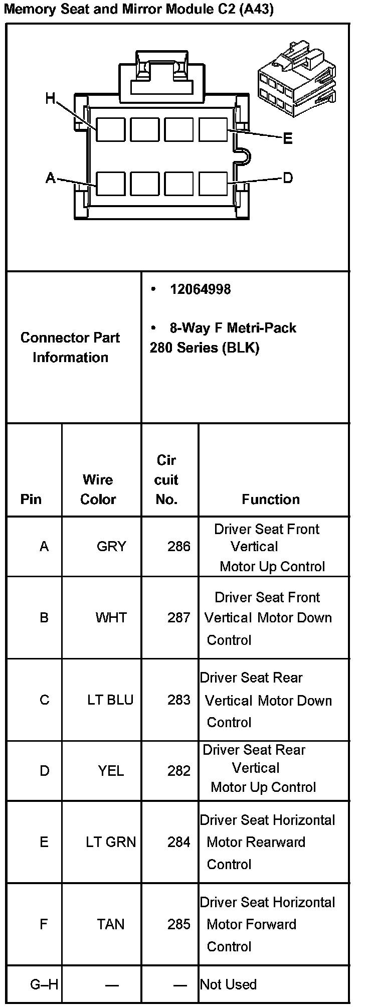 Memory Seat and Mirror Module C2 (With RPO Code A43)