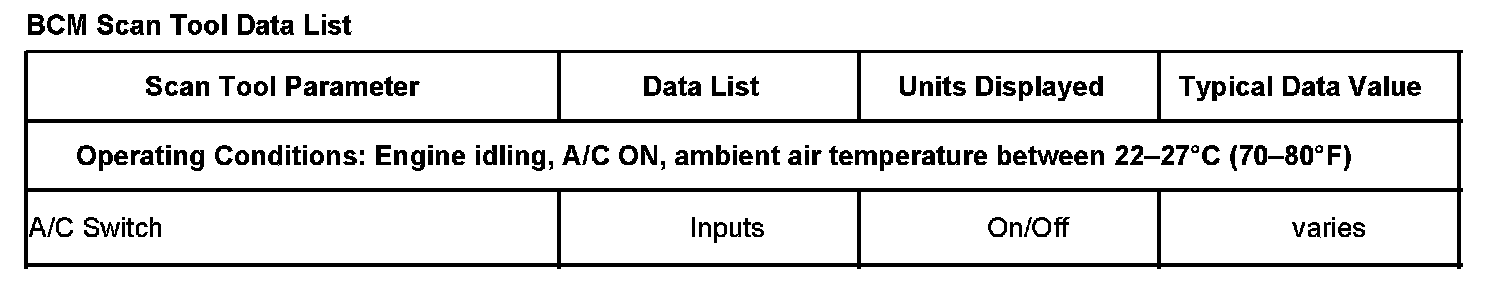 Scan Tool Data List - Body Control Module (BCM)