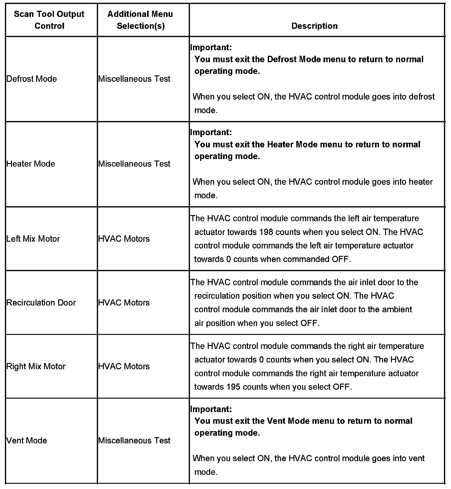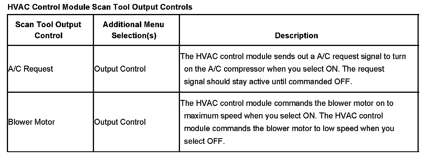 Scan Tool Output Controls - HVAC Control Module