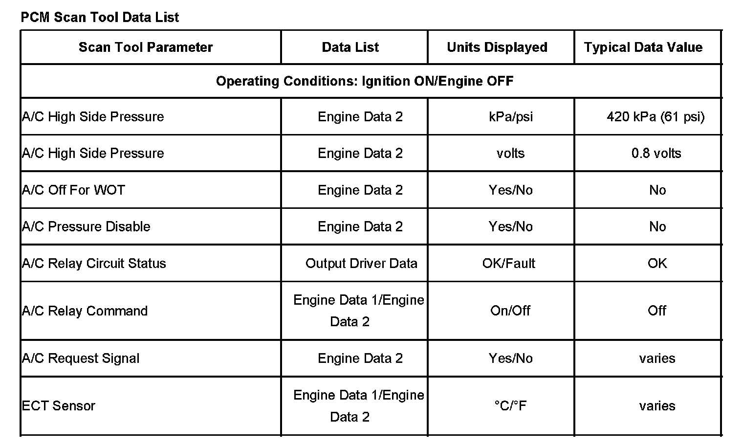 Scan Tool Data List - Powertrain Control Module (PCM)