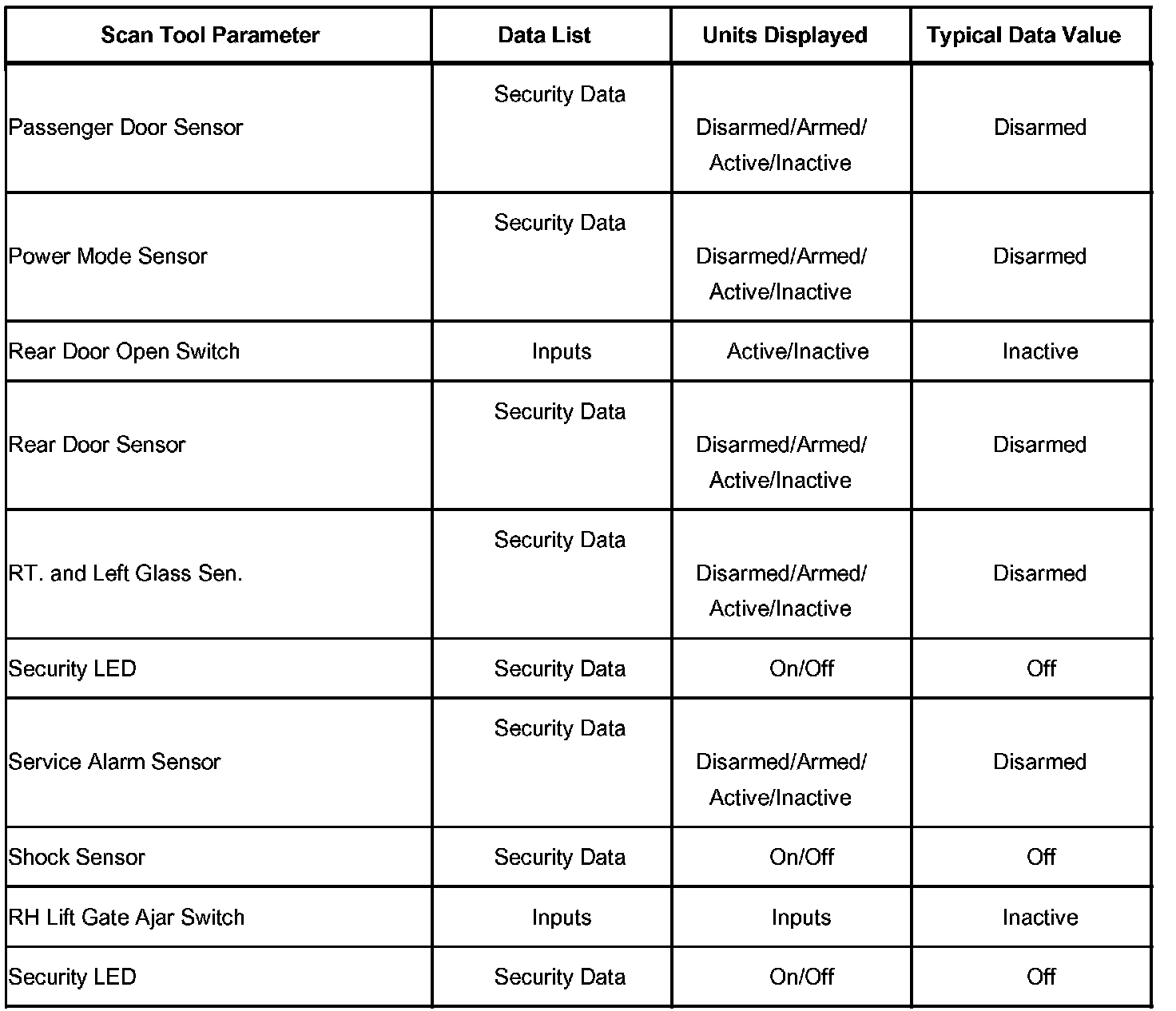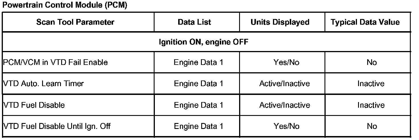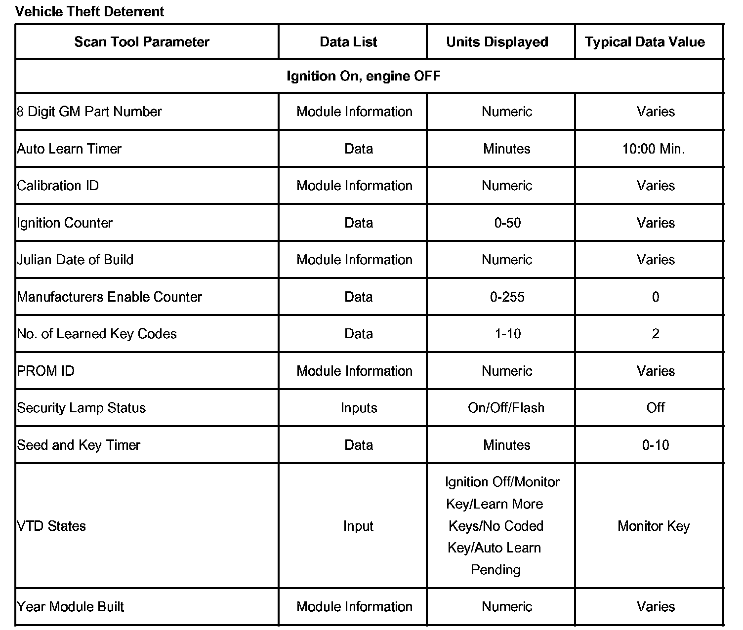 Scan Tool Data List - Vehicle Theft Deterrent: