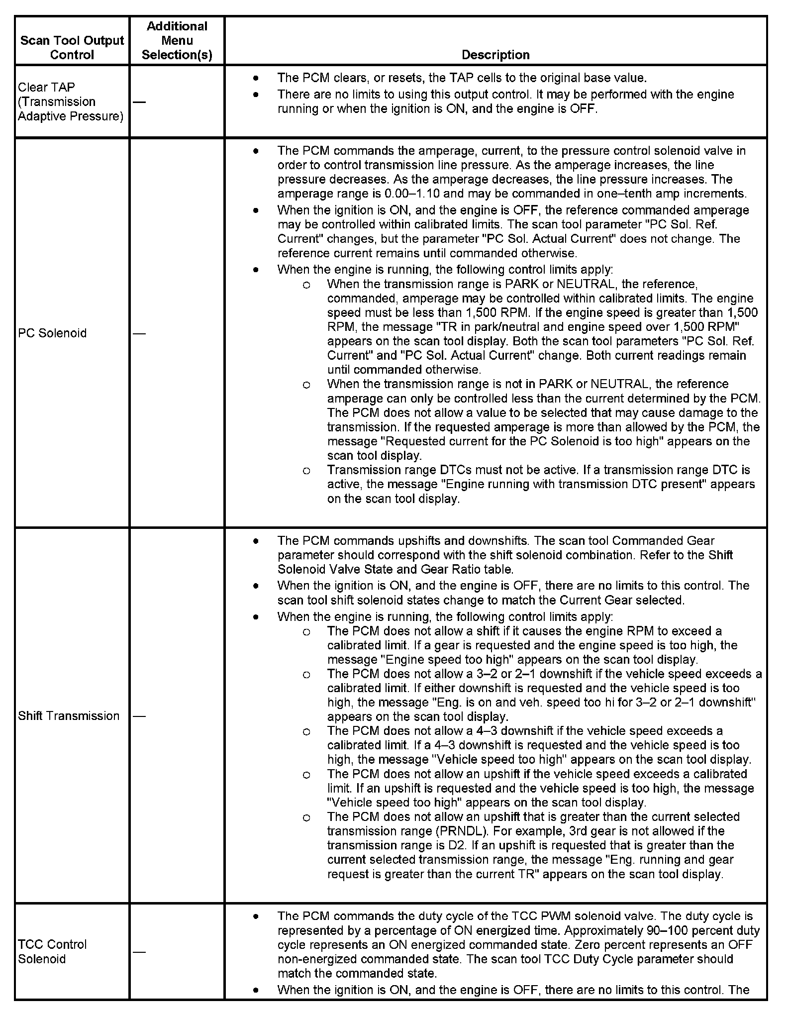 Scan Tool Output Controls
