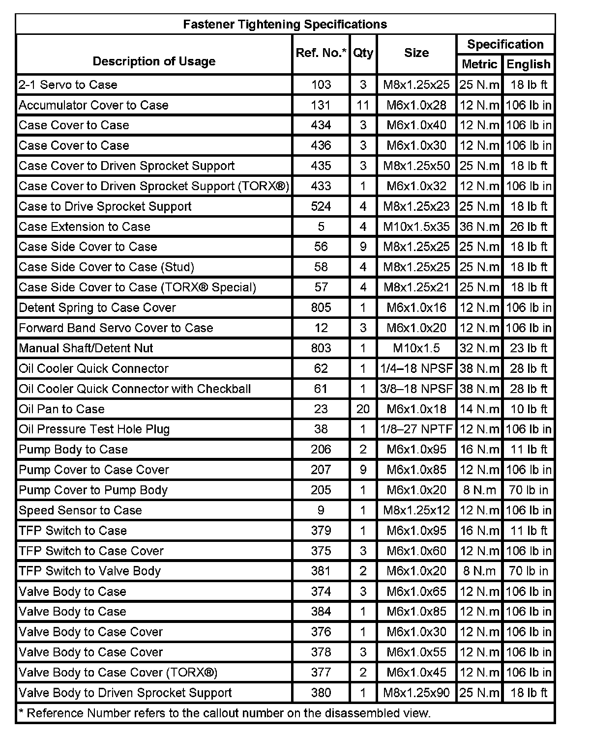 Fastener Tightening Specifications