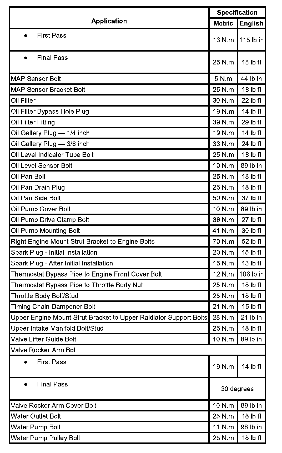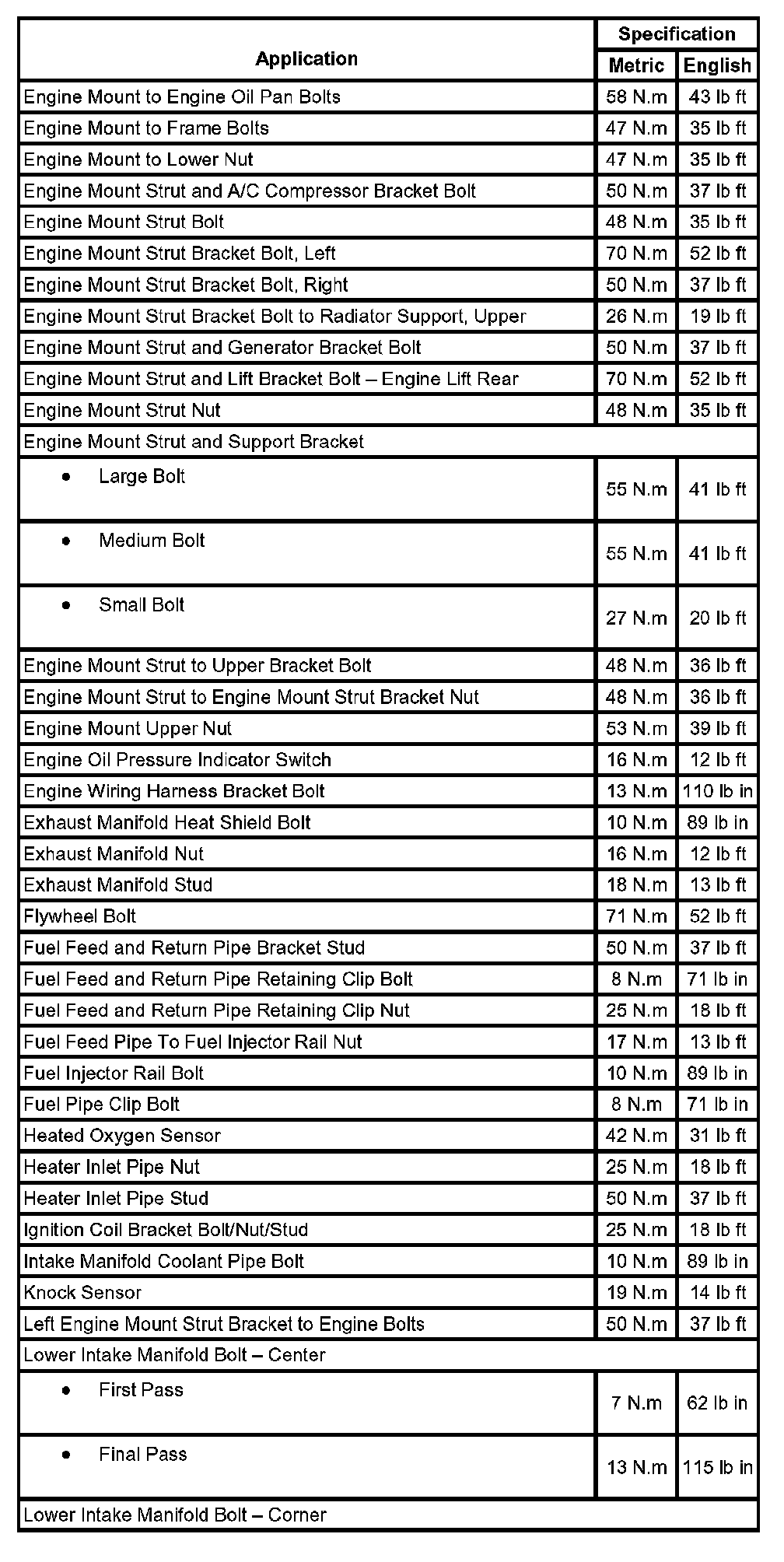 Torque Specifications