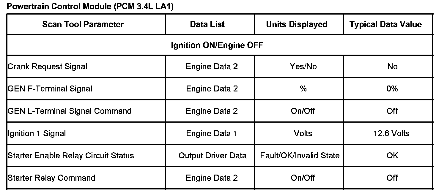 Scan Tool Data List - Powertrain Control Module (PCM)