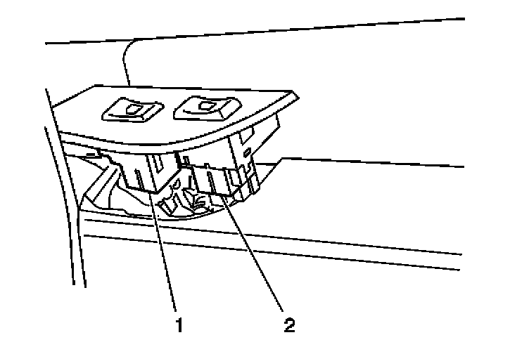 1. Install the front door window control switch (1) into the front door window switch plate pressing into place until fully seated.