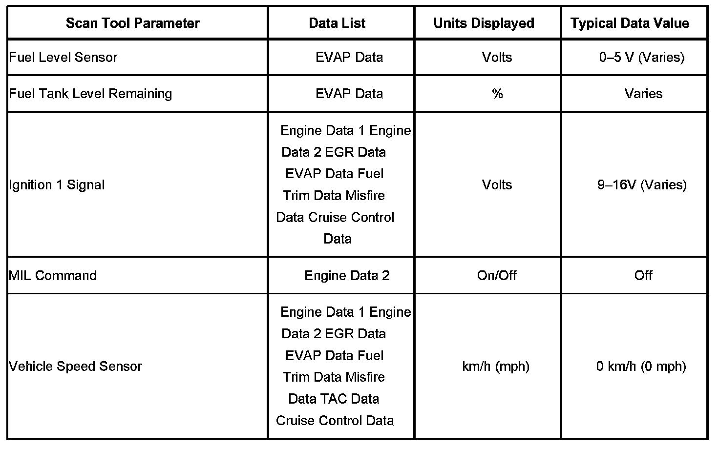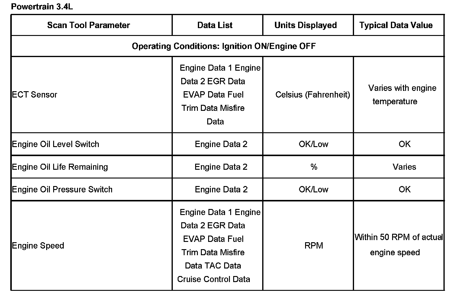 Scan Tool Data List - Powertrain Control Module (PCM)