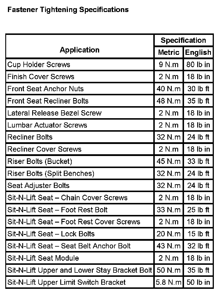 Seats: Specifications