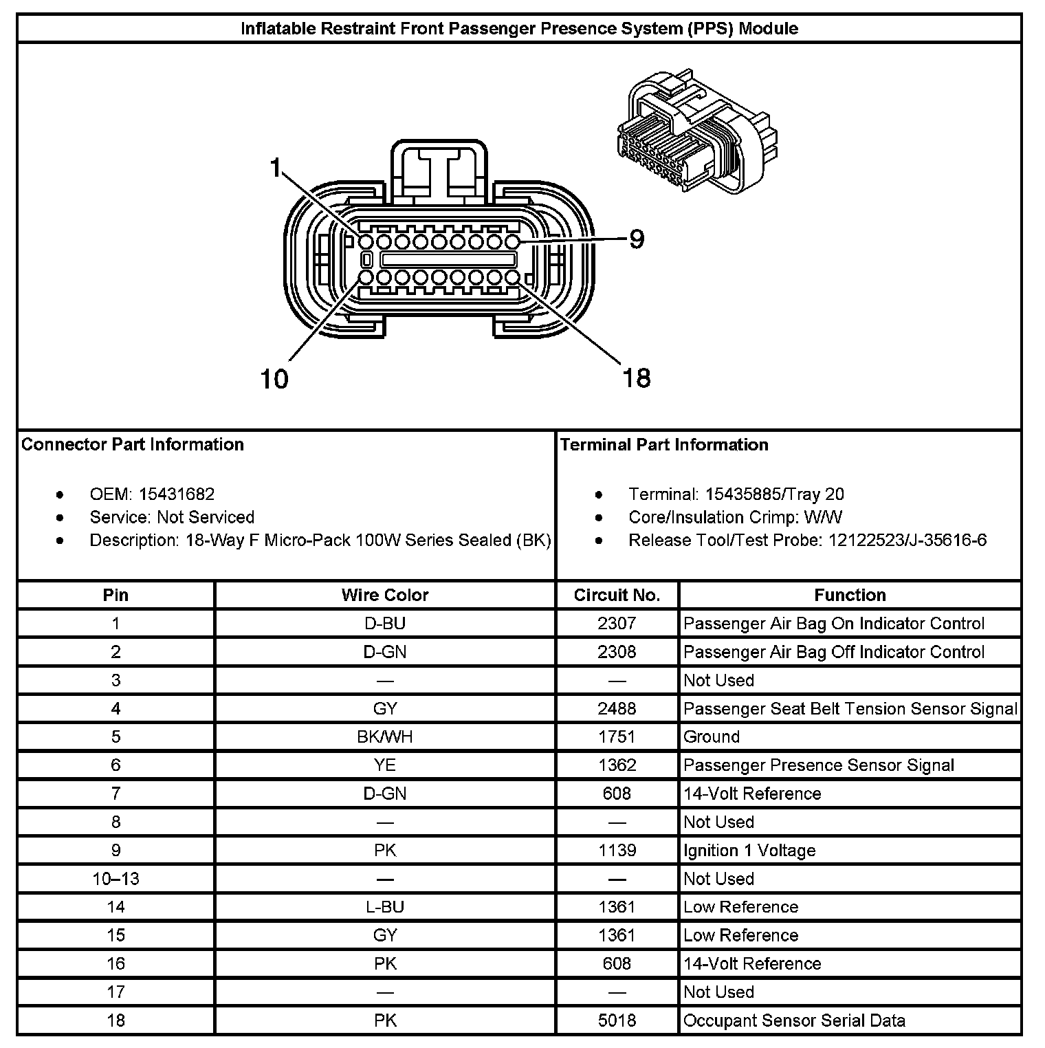 Inflatable Restraint Front Passenger Presence System (PPS) Module: