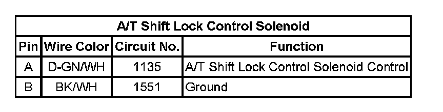 A/T Shift Lock Control Solenoid: