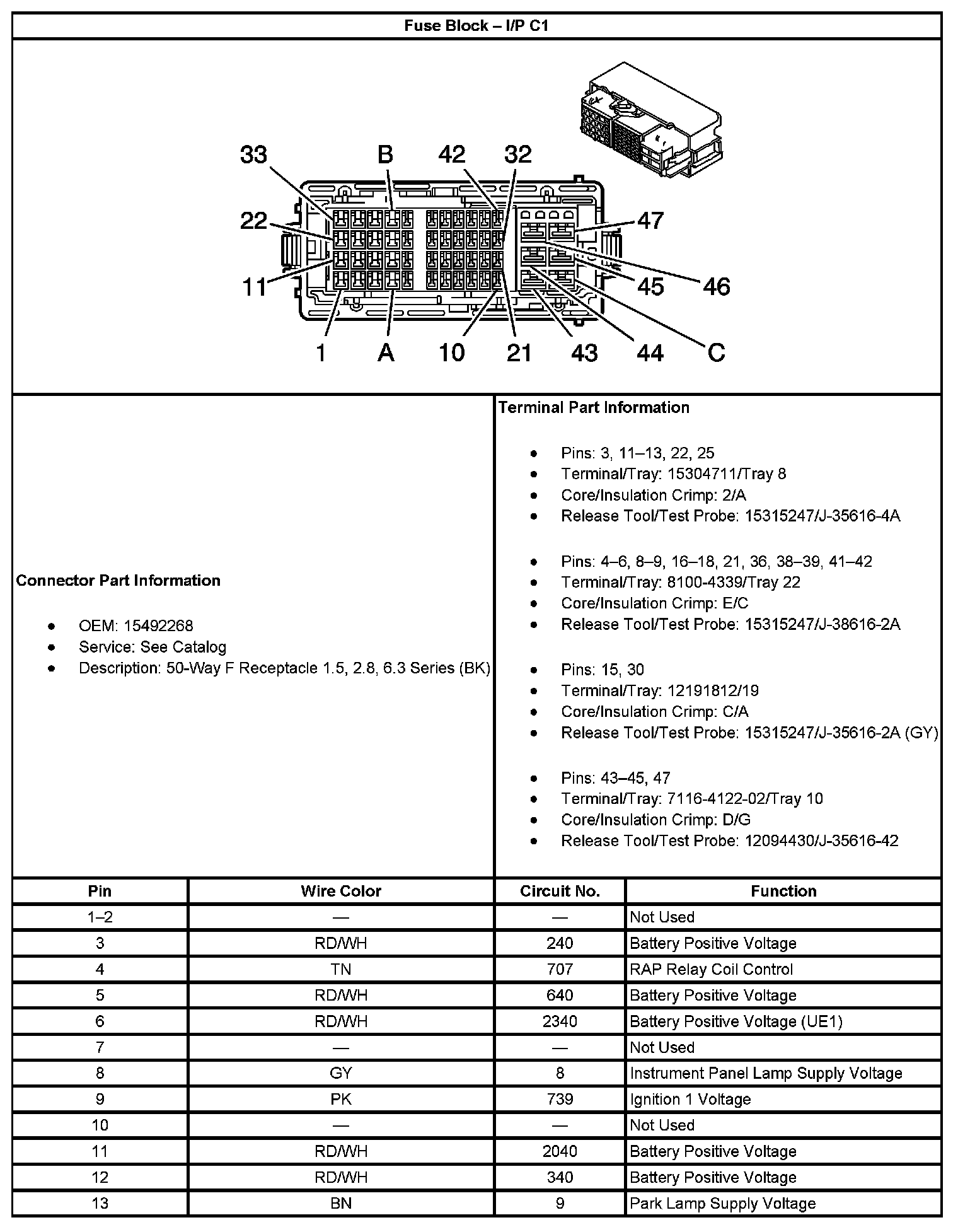 Fuse Block - I/P C1 (Part 2):