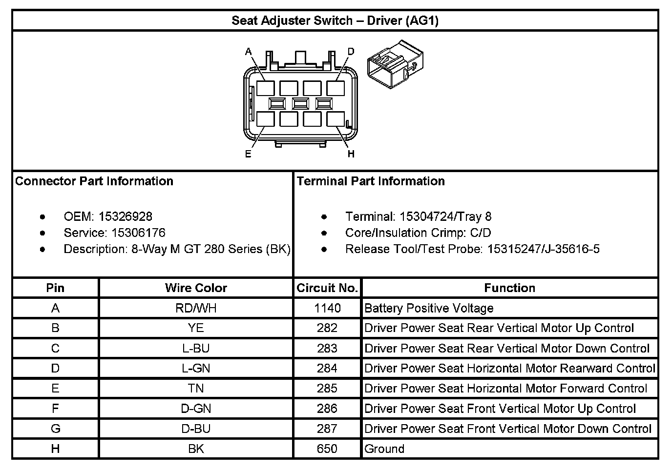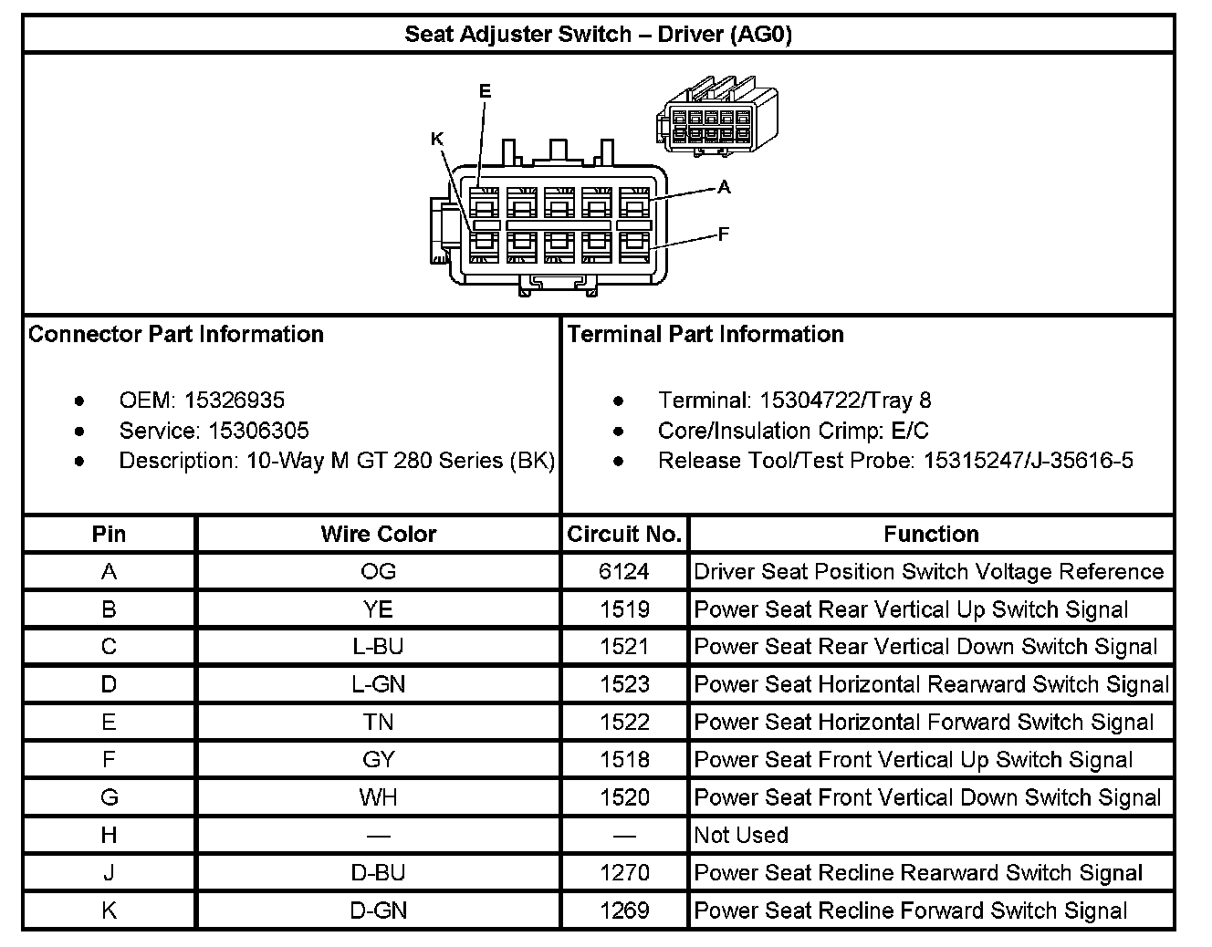 Seat Adjuster Switch - Driver (With RPO Code AG1):