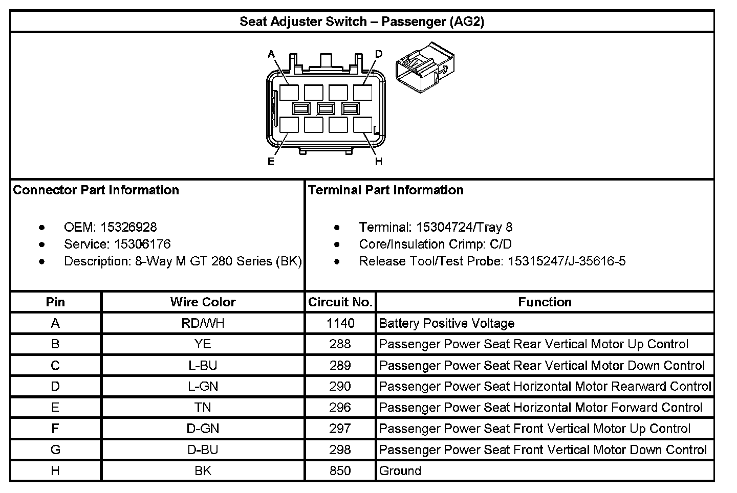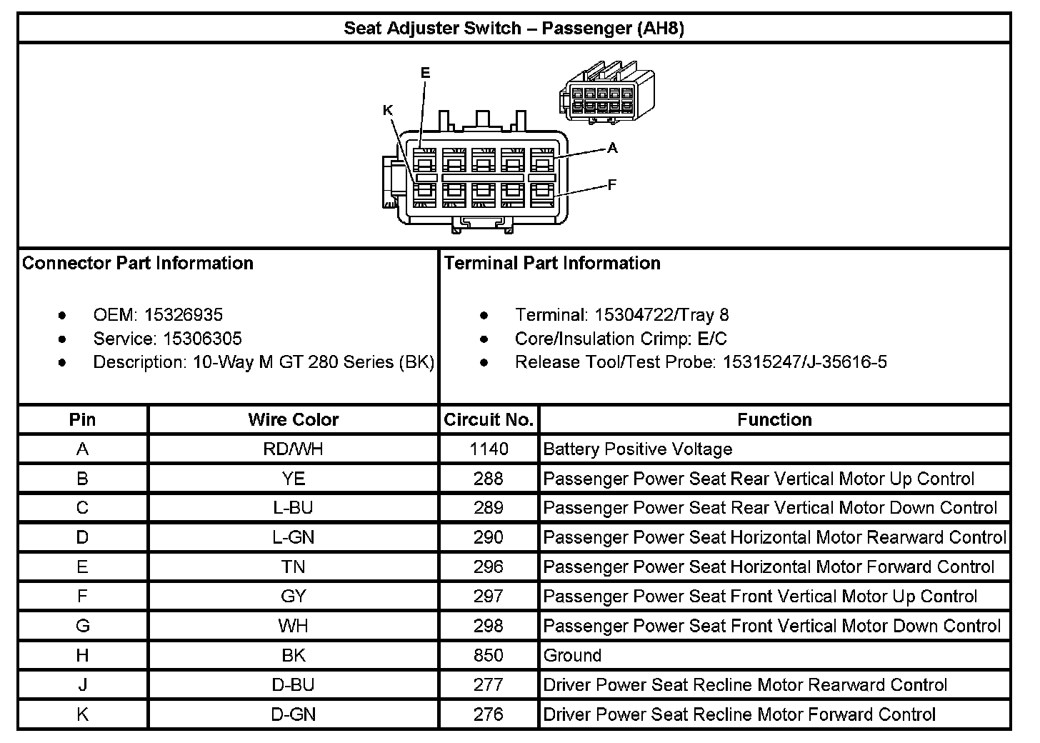 Seat Adjuster Switch - Passenger (With RPO Code AH8):