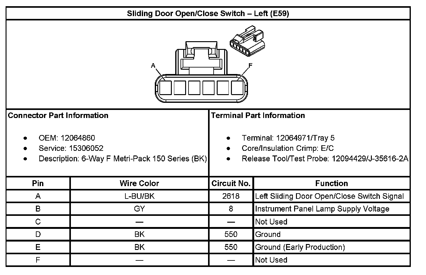 Sliding Door Open/Close Switch - Left (With RPO Code E59):