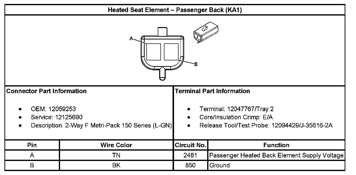 Heated Seat Element - Passenger Back (With RPO Code KA1):