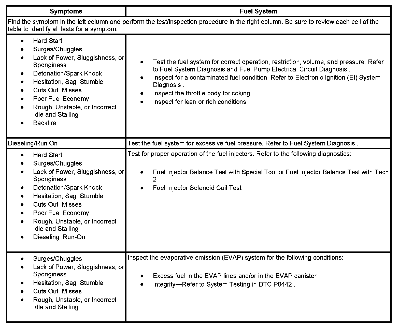 - Symptoms - Fuel System