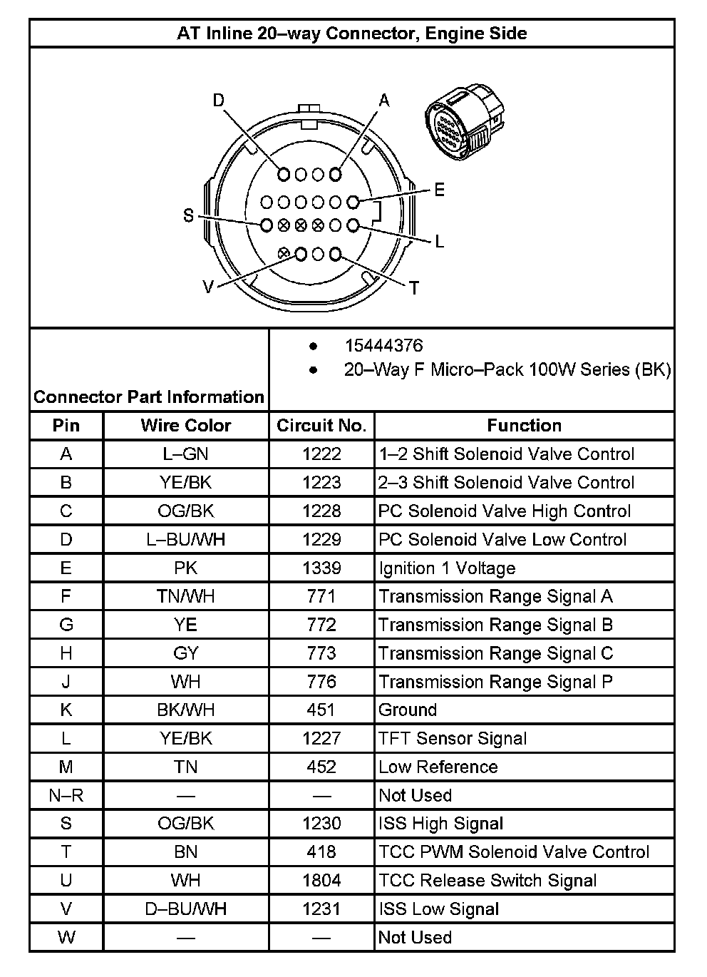 A/T Inline 20-Way Connector, Engine Side