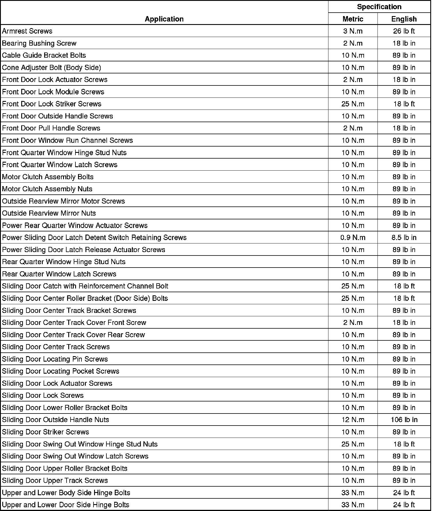 Fastener Tightening Specifications
