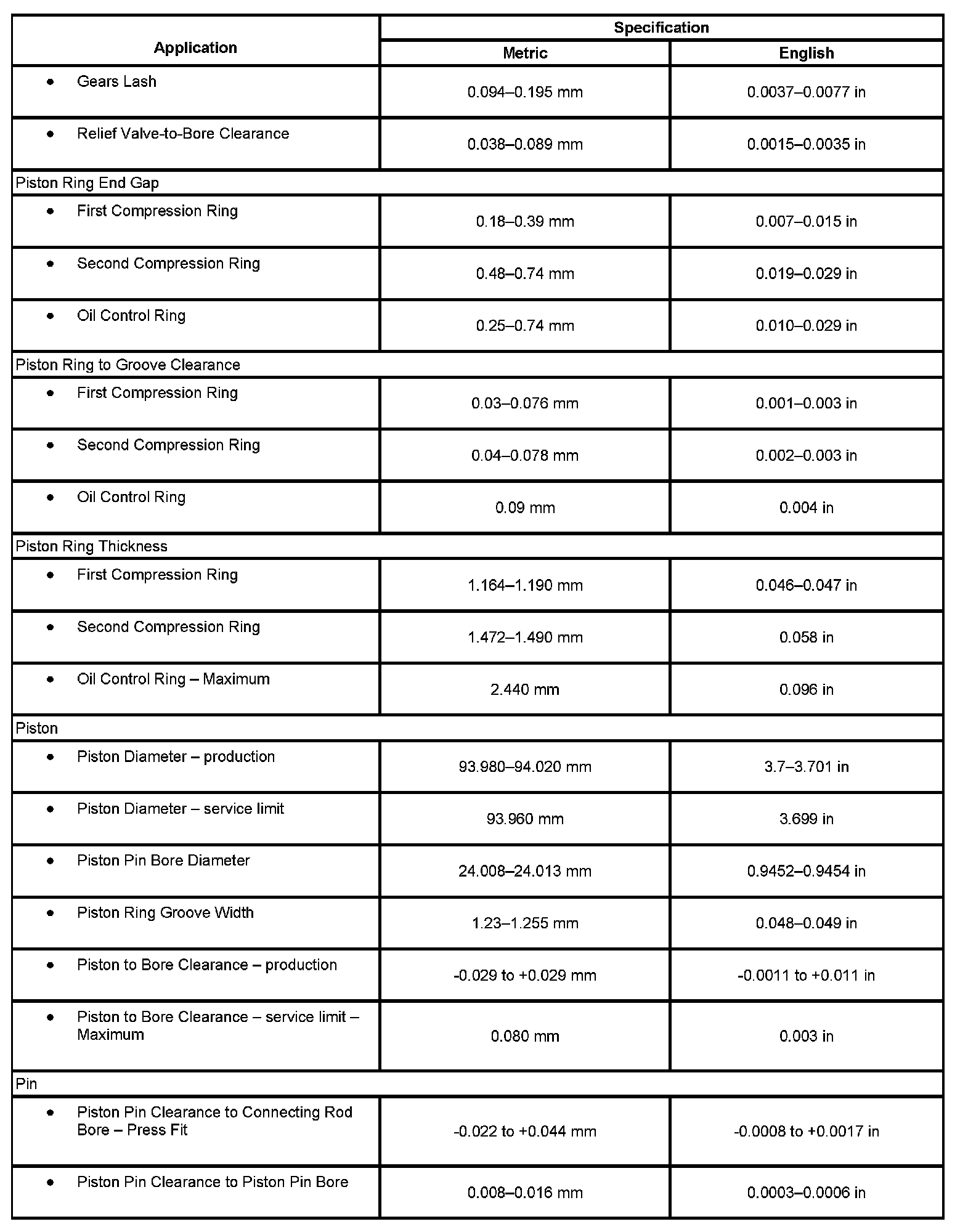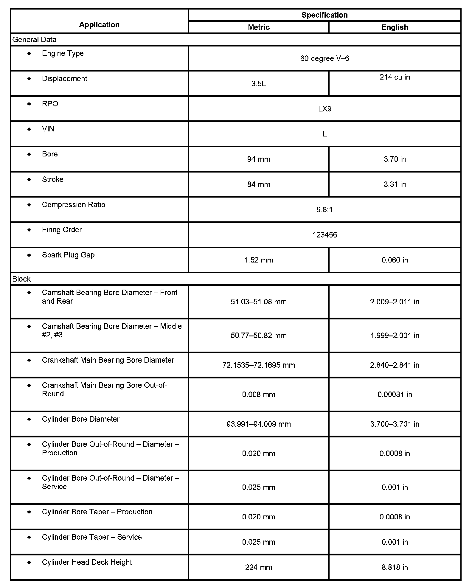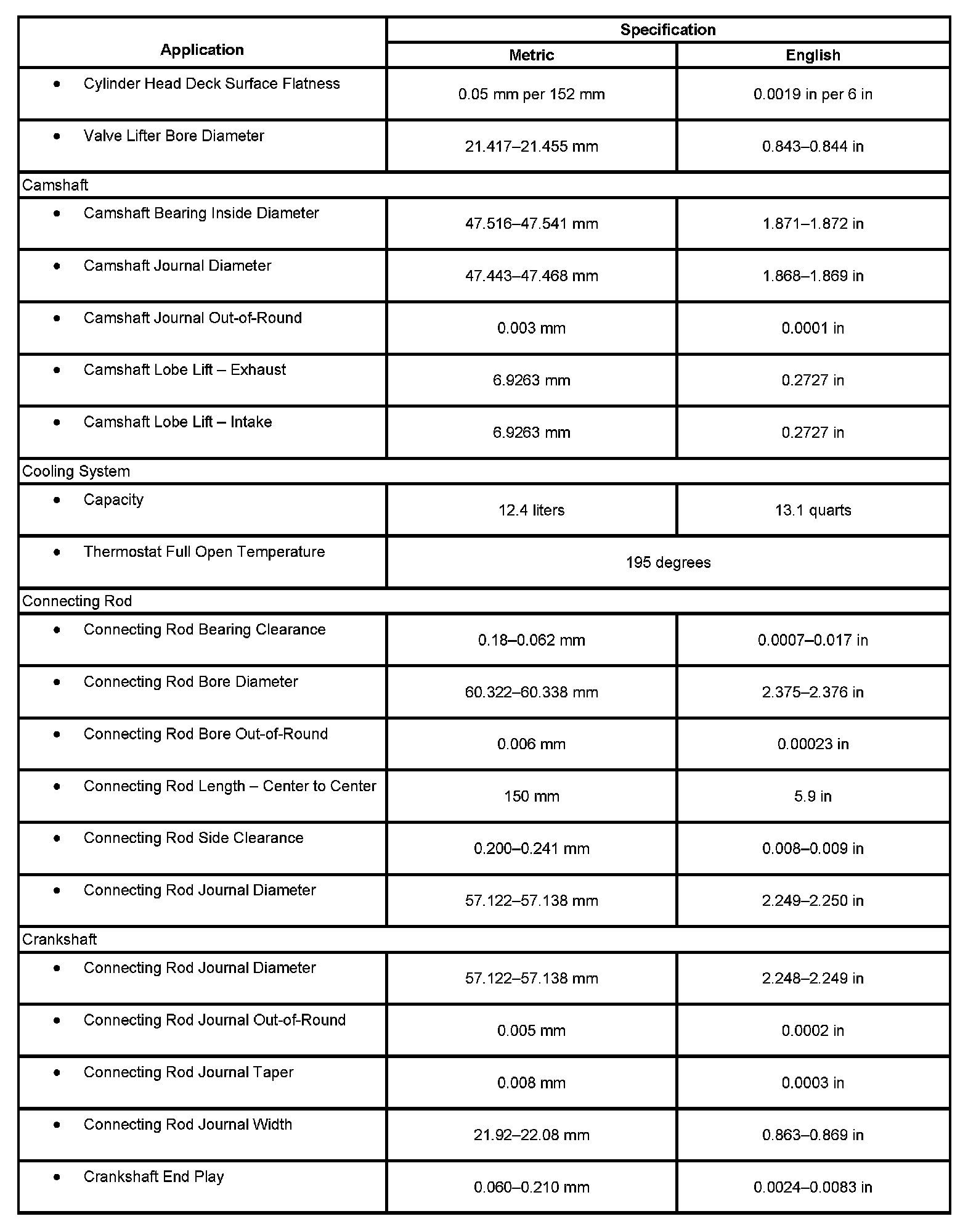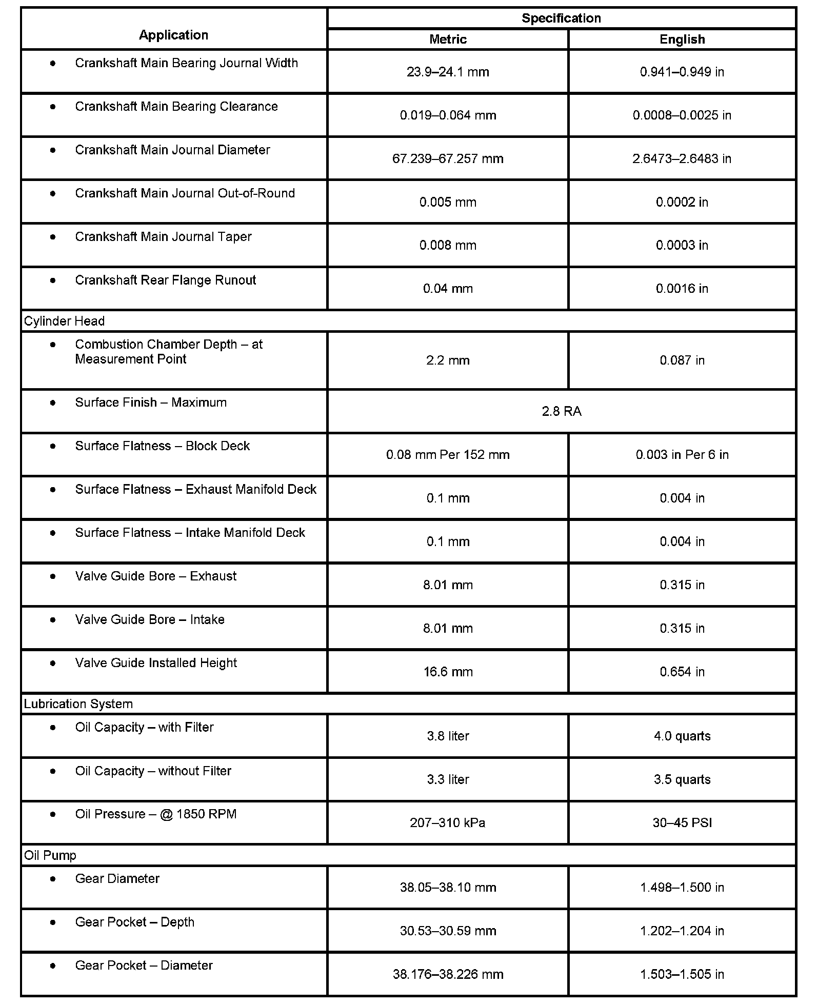 Engine Mechanical Specifications: