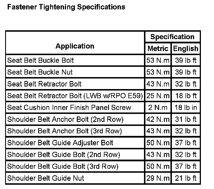 Fastener Tightening Specifications: