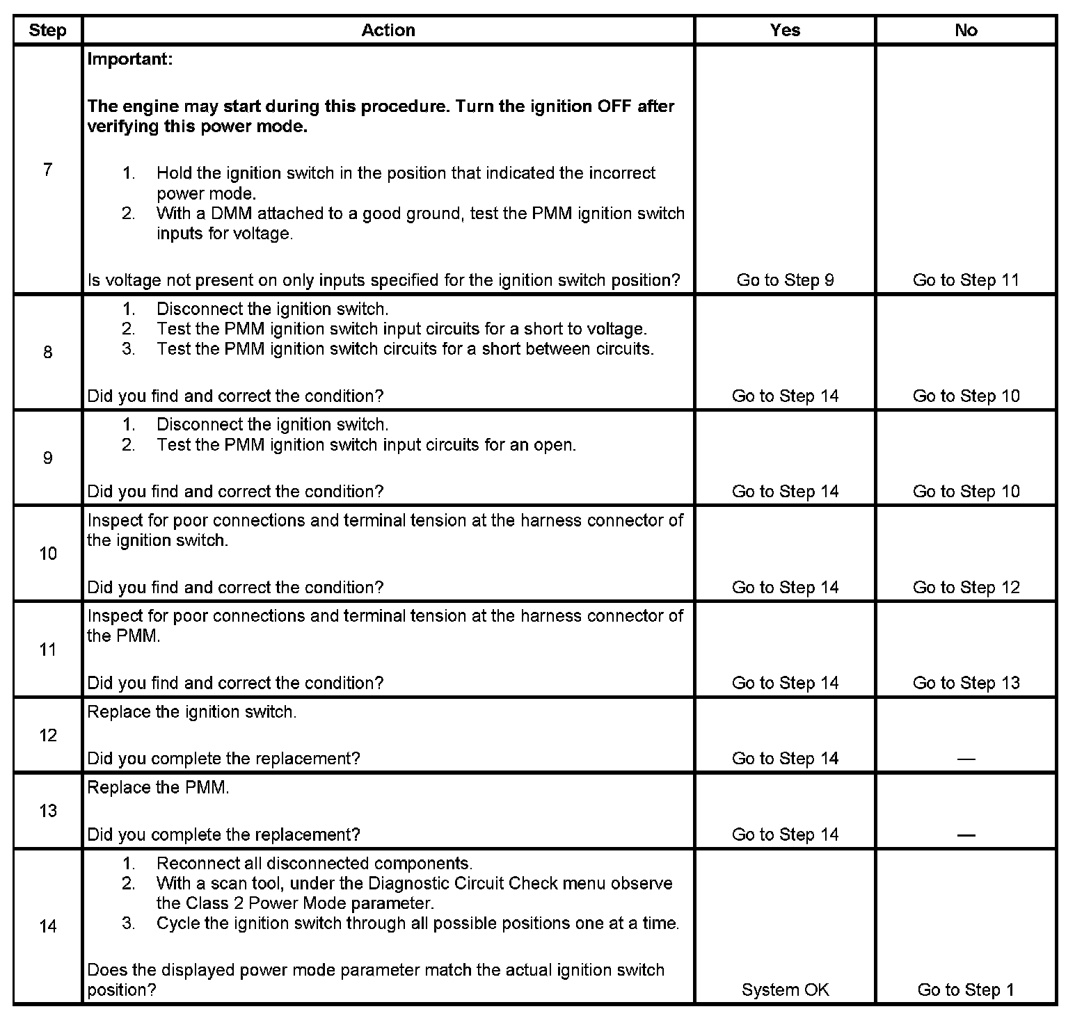7. This step tests for no battery voltage on the required signal circuits.