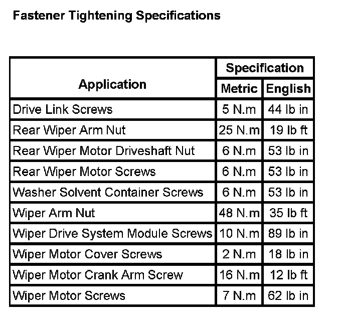 Wiper and Washer Systems: Specifications