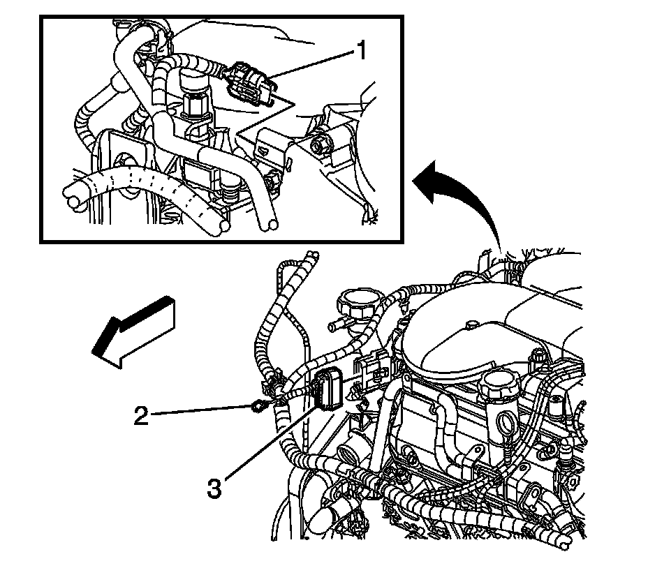 8. Disconnect the engine harness electrical connector (3) from the fuel injector harness electrical connector.