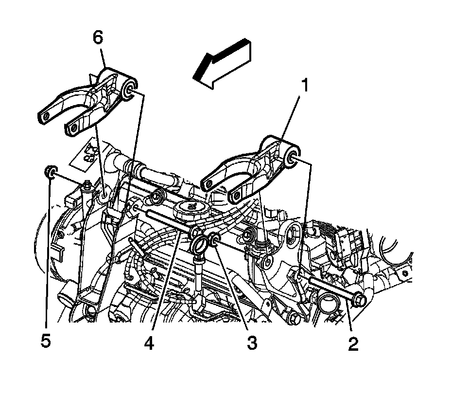 4. Loosen and remove the engine mount strut to engine mount strut bracket through bolts (2, 4) and nuts (3, 5).
