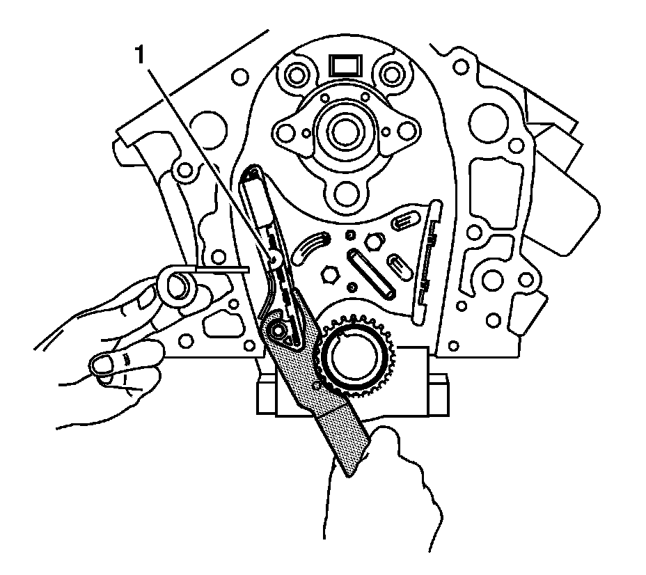 12. Remove the retaining pin from the timing chain tensioner in order to make the tensioner active.