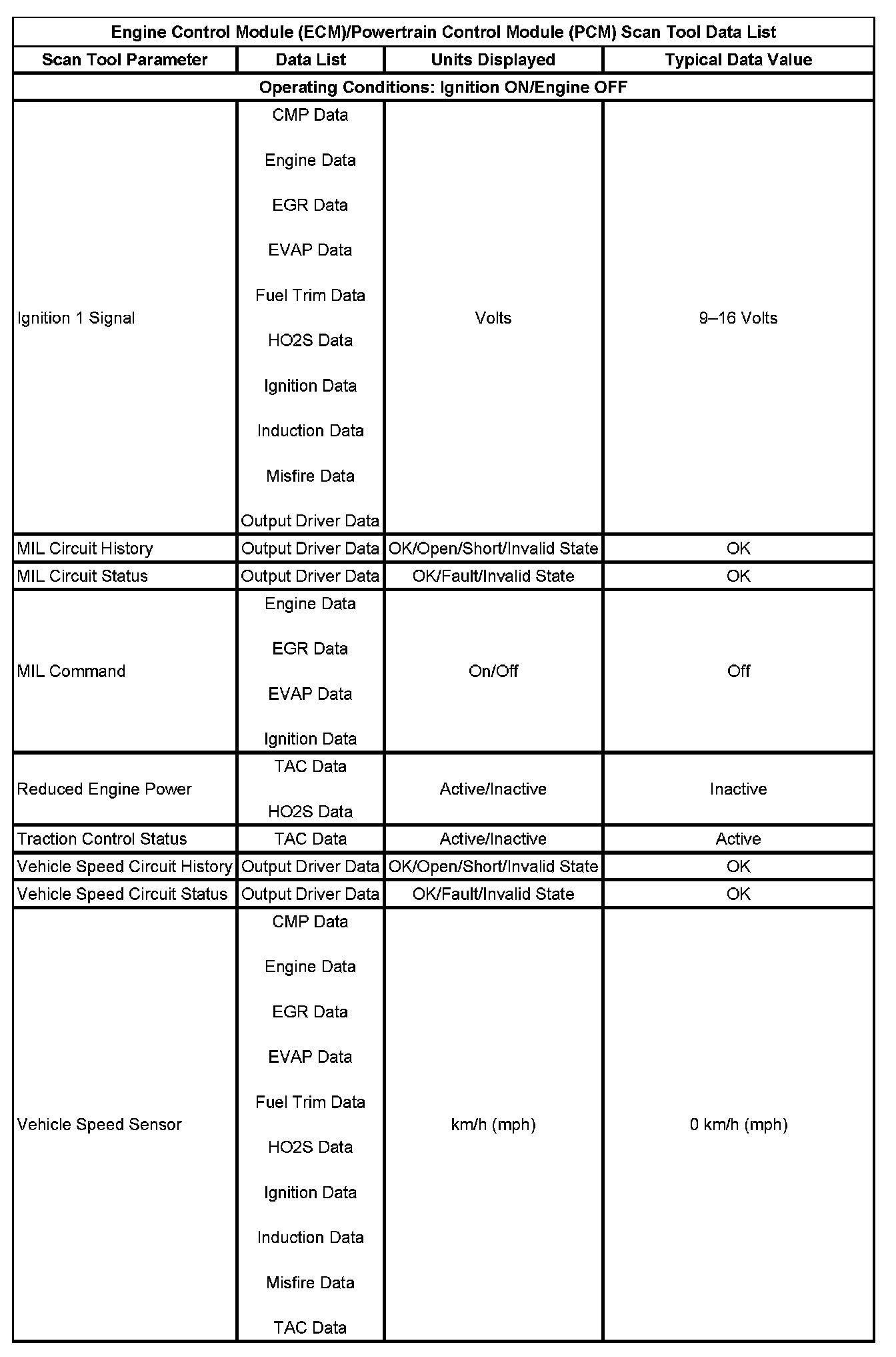 Engine Control Module (ECM)/Powertrain Control Module (PCM) Scan Tool Data List