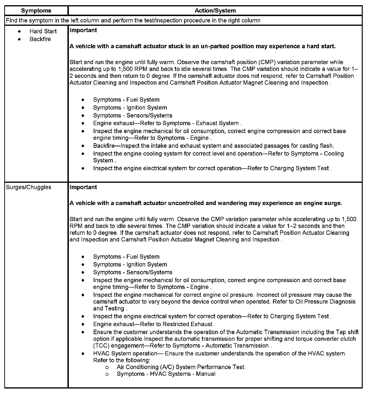 - Locate the correct symptom. Perform the tests and inspections associated with the symptom.